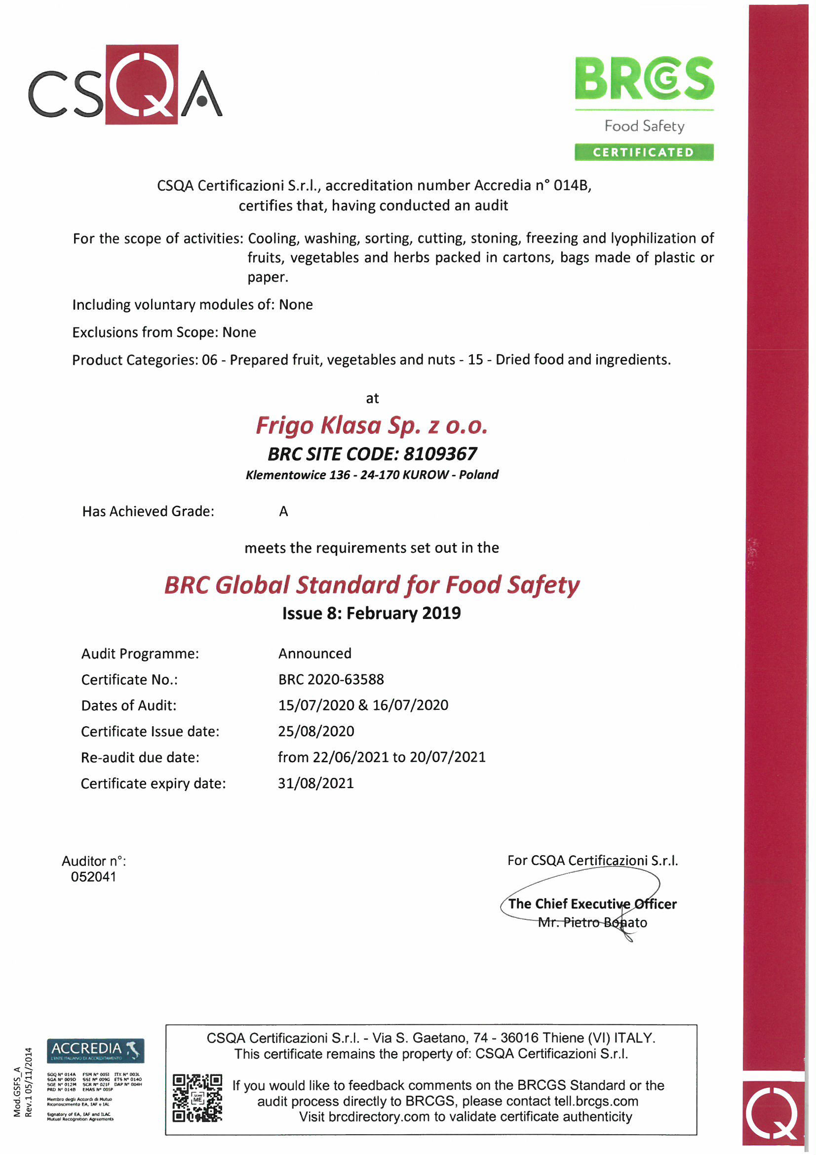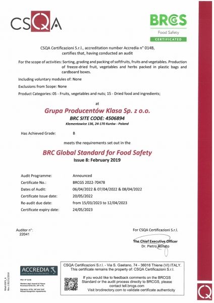 Certyfikat BRC 2020