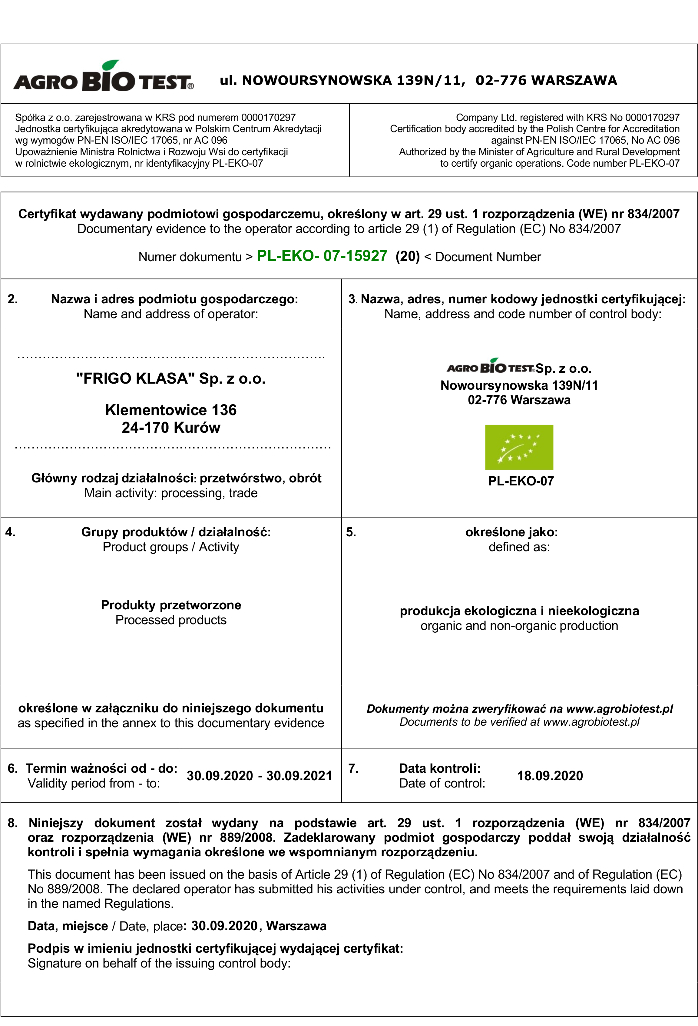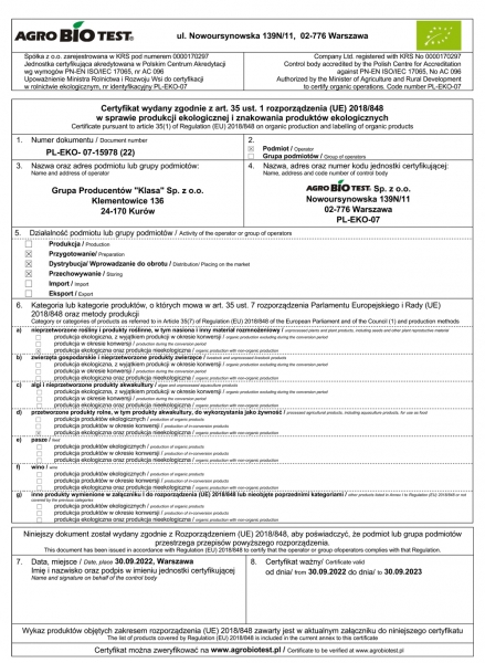Certyfikat EKO 2022