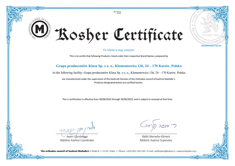 Certyfikat KOSHER 2022